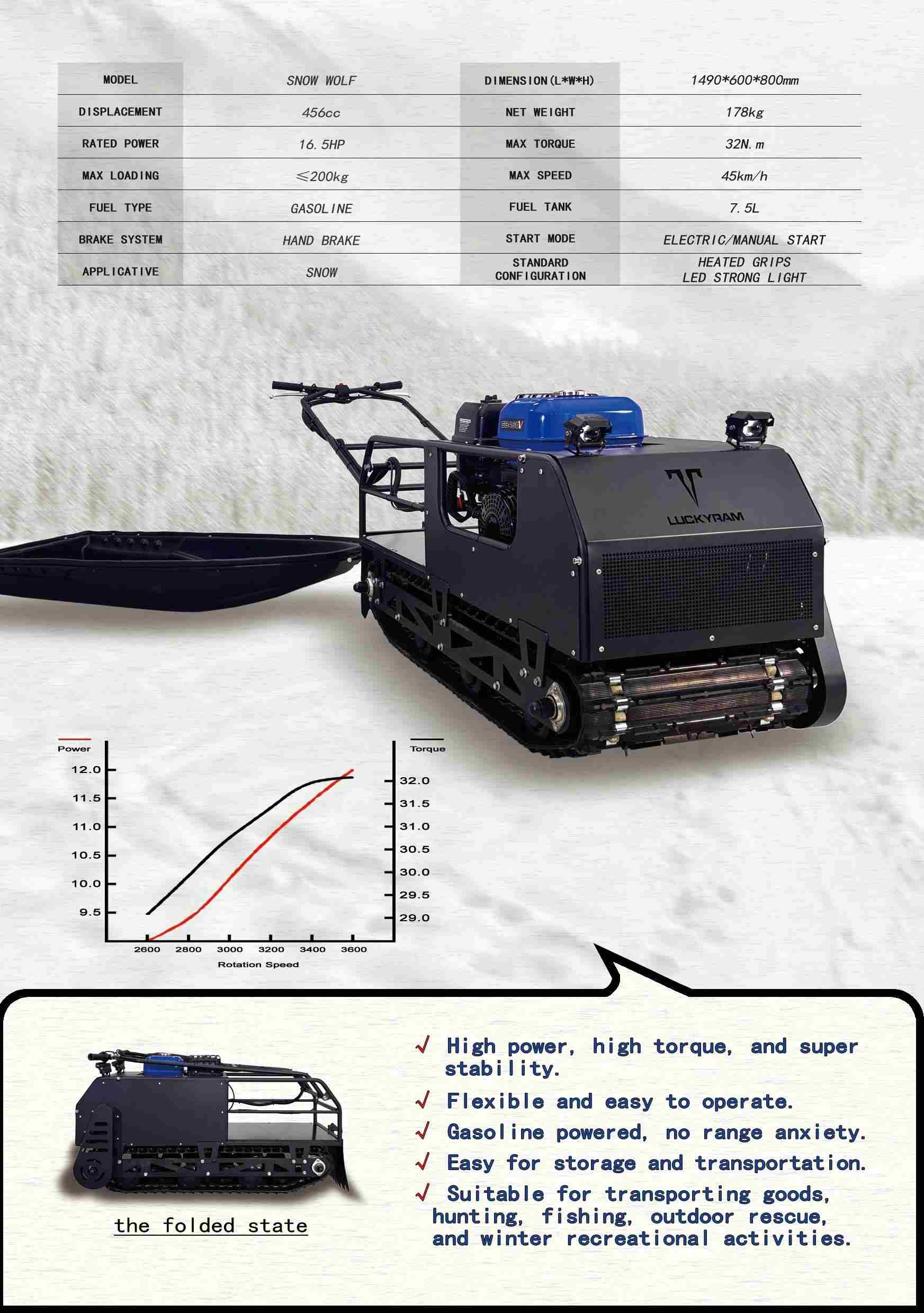 एक उच्च गुणवत्ता वाले 456cc इंजन द्वारा संचालित और बड़े स्लेज से सुसज्जित, यह वाहन गहरी बर्फ के लिए एकदम सही है। इसका शक्तिशाली इंजन बर्फ में सुखद ड्राइविंग सुनिश्चित करता है।